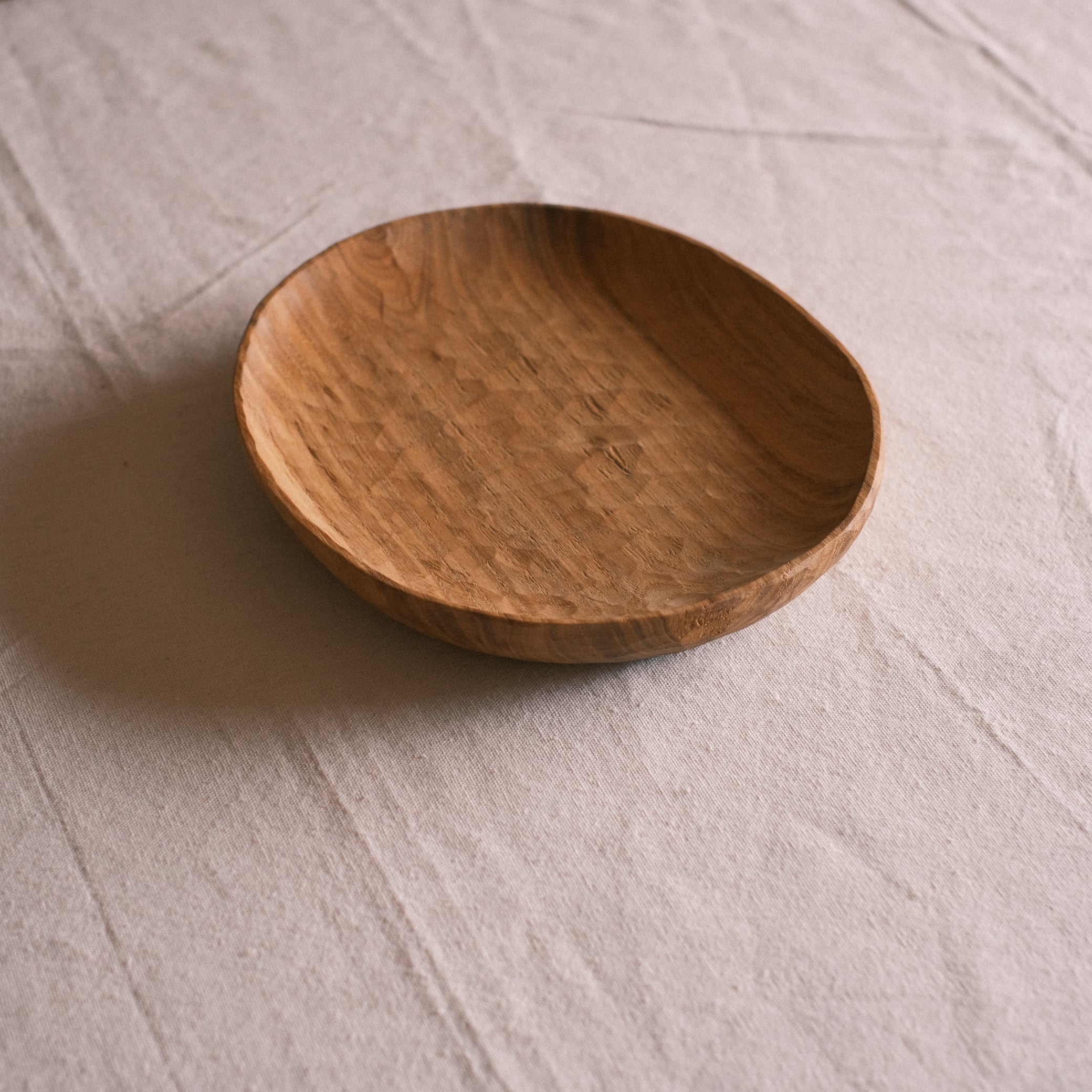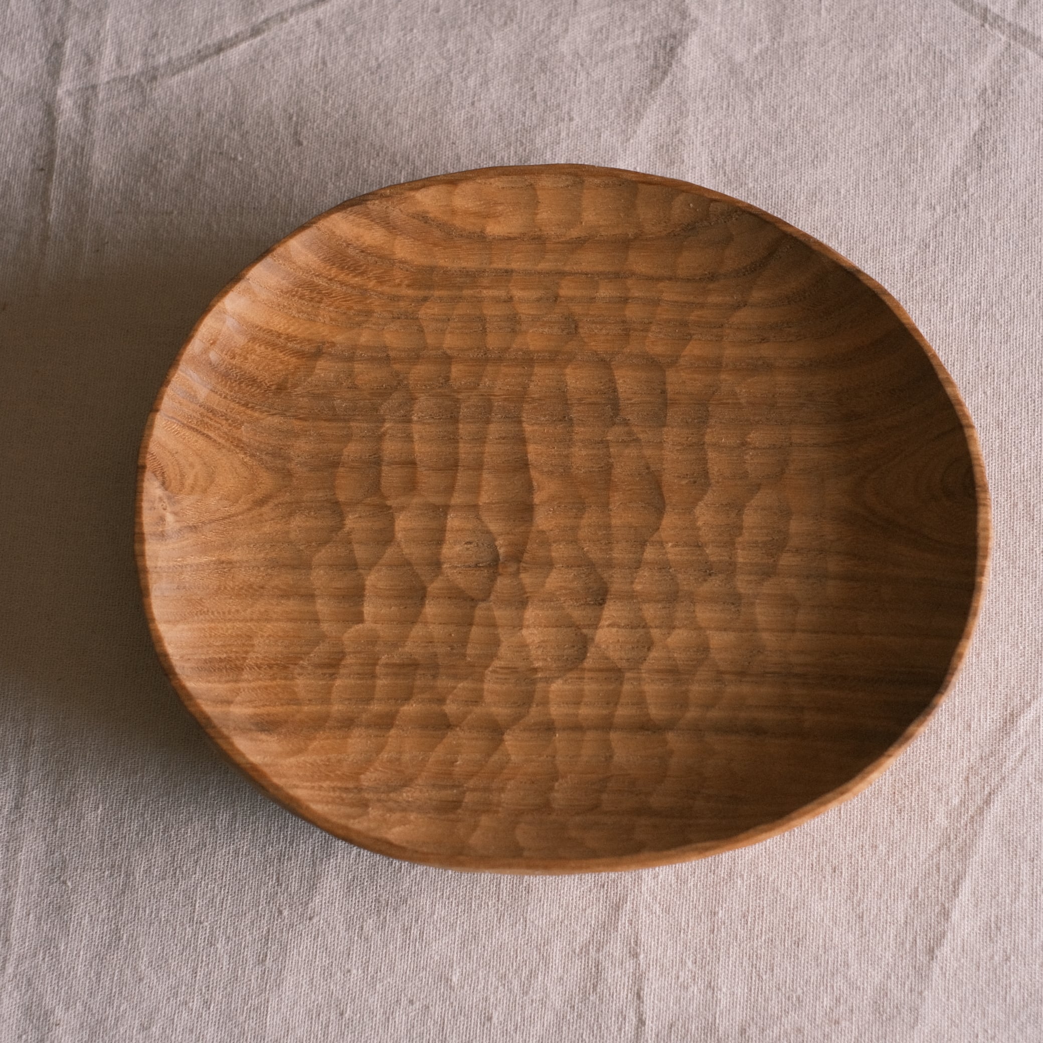 size 25×22×h3.5cm 手彫り くるみオイル仕上げ